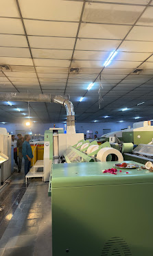 Core spinning process: roving is drafted and twisted into yarn. Machines from Lakshmi Machine Works, Coimbatore.